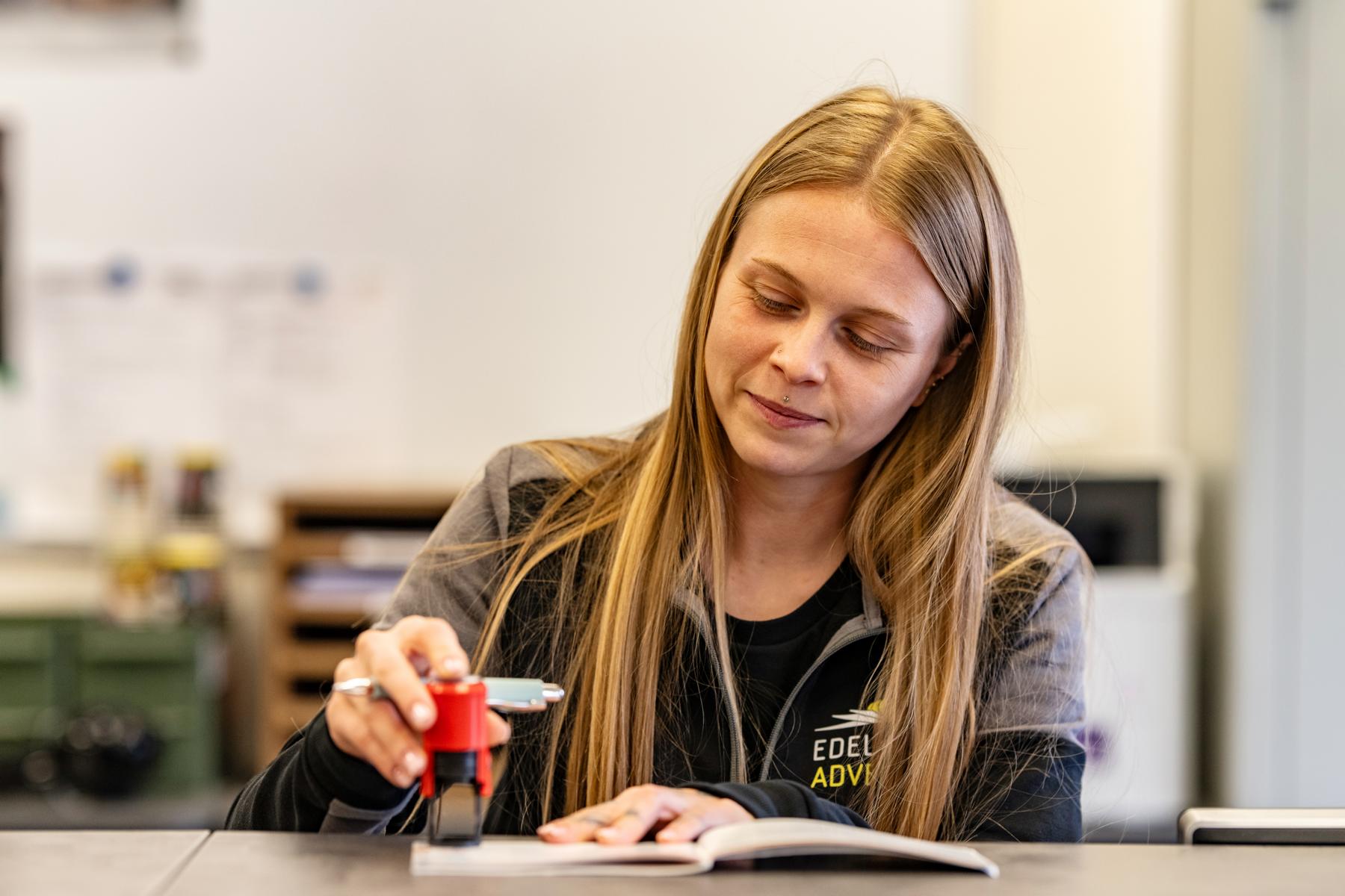 Mitarbeiterin beim Abstempeln