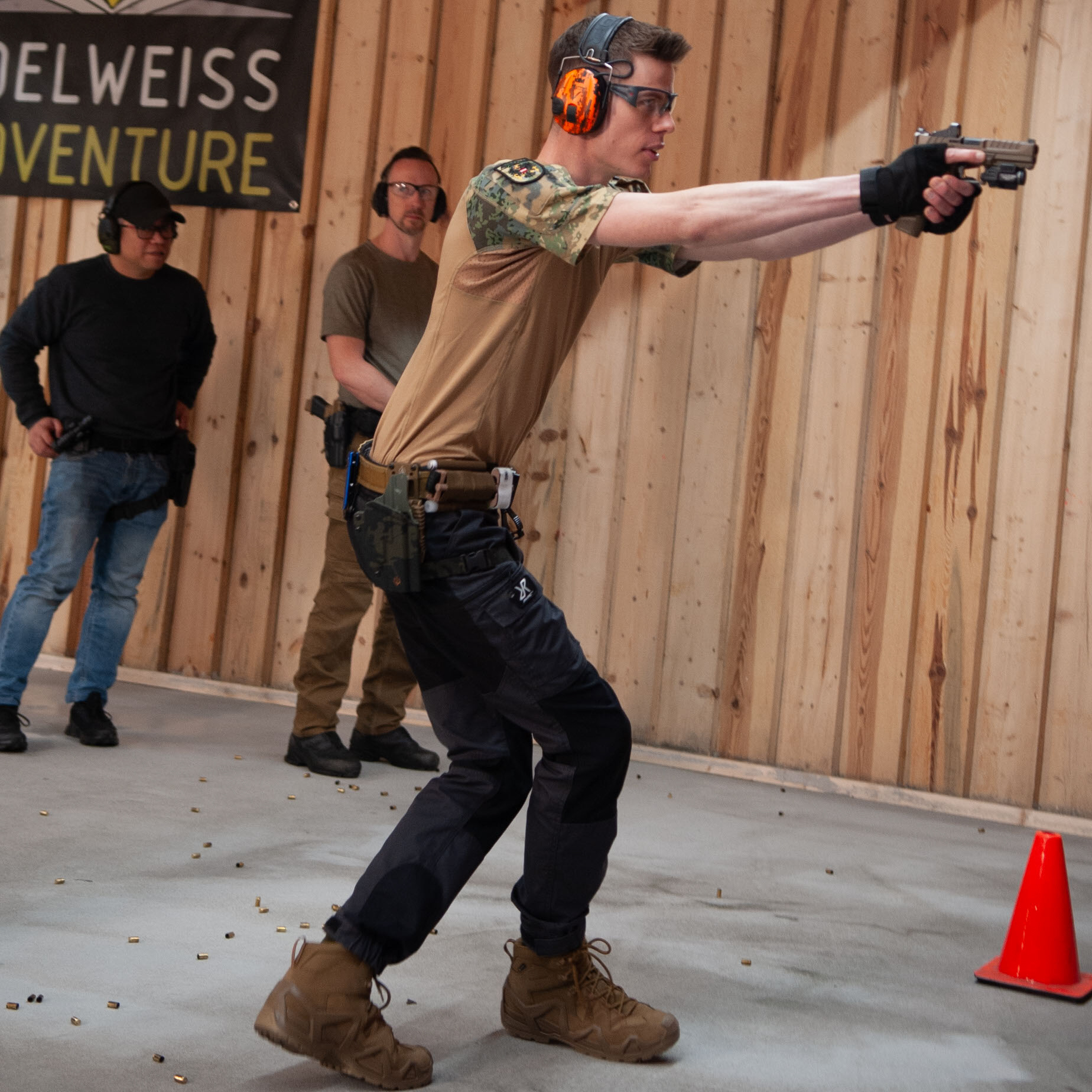 Das taktische Schießtraining als Kombination aus allen Lehrgängen und Schießtrainings. Der Schießtrainer hat alle Freiheiten und fordert die Schützen auf höchstem Niveau mit allen Anforderungen zum Verteidigungsschießen.